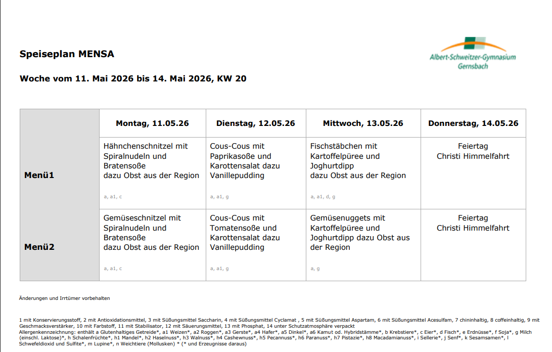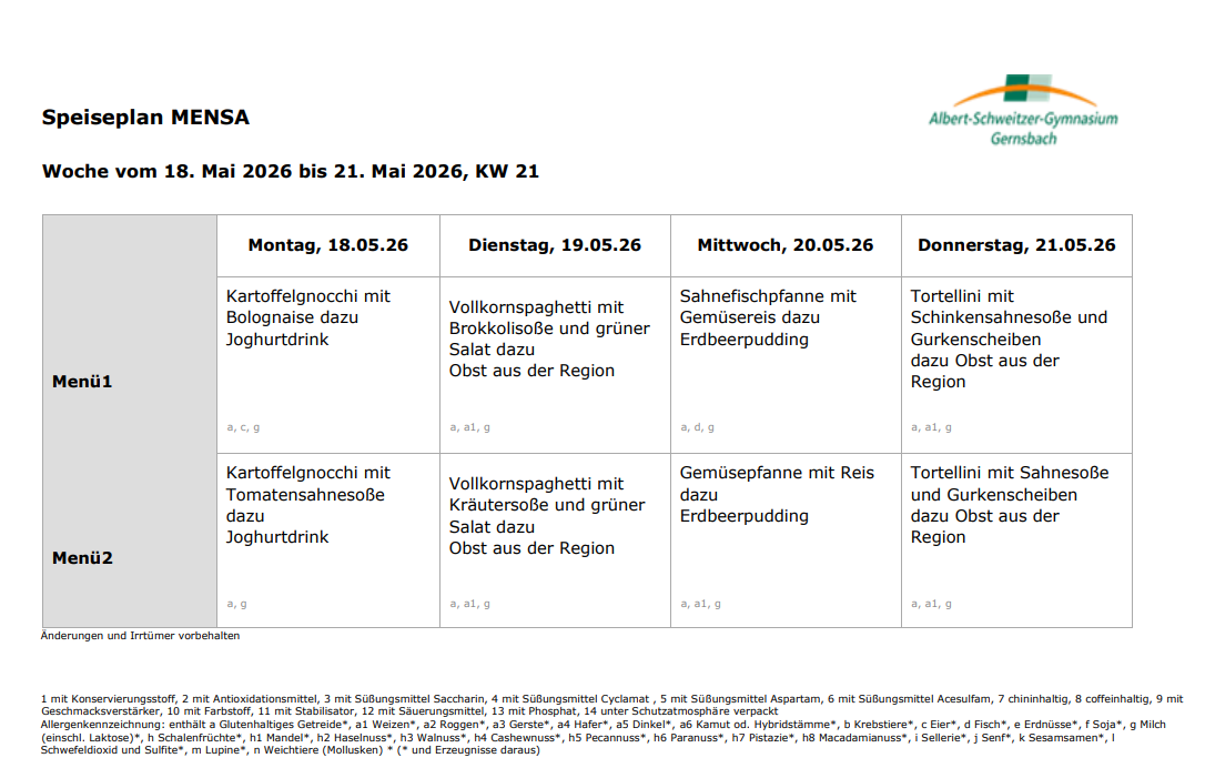 Aktuelle Speisepläne -