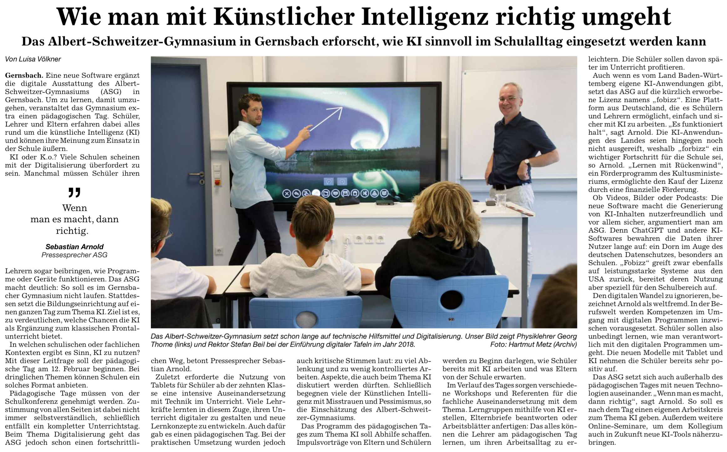 Das ASG ist in den Fächern Mathe, Informatik, Naturwissenschaften, Technik (MINT) besonders ausgestattet und engagiert. .