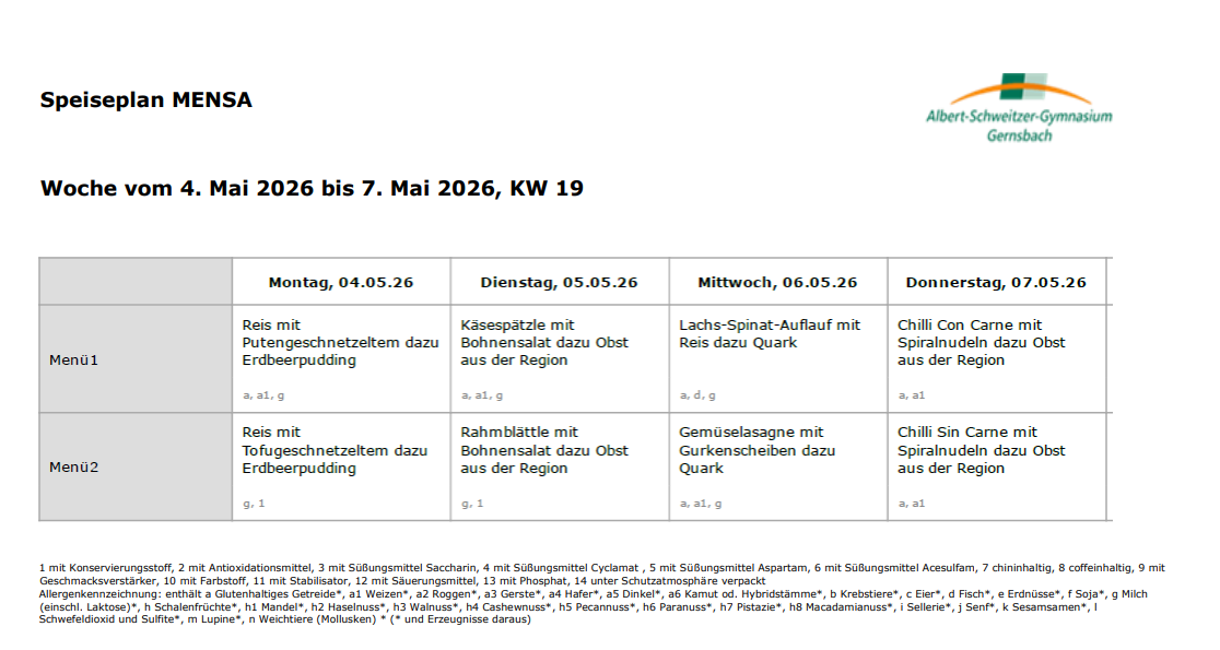 Aktuelle Speisepläne -